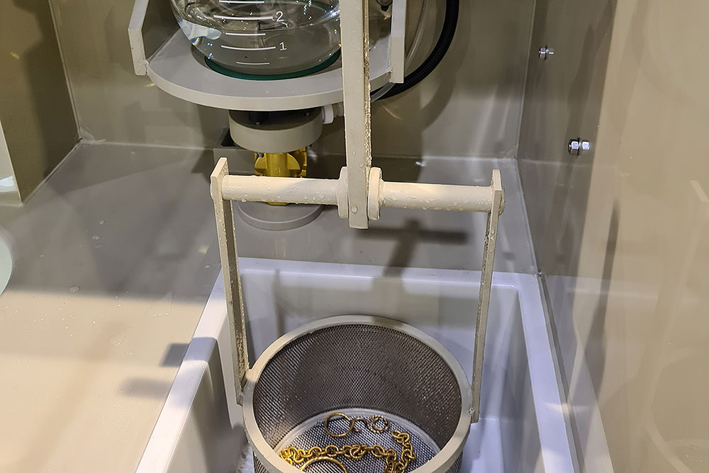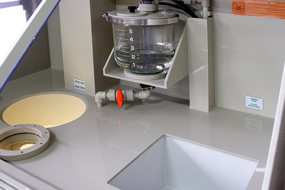 L'impianto di brillantatura chimica (bombing) consente il trattamento superficiale dei pezzi di oreficeria per via chimica, grazie alla reazione tra perossido di idrogeno (H2O2) e cianuro di potassio (KCN).*