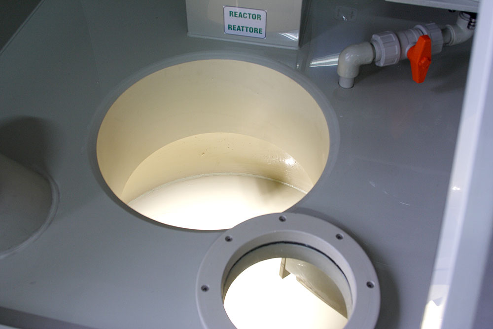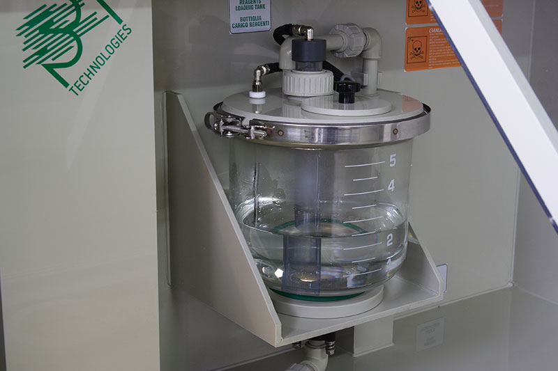 L’impianto consente di effettuare la reazione in completa sicurezza e sotto cappa di aspirazione.