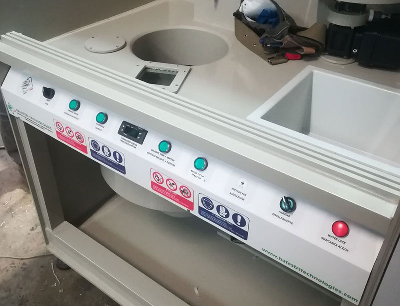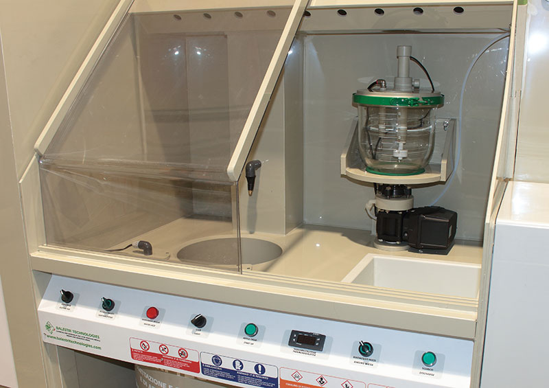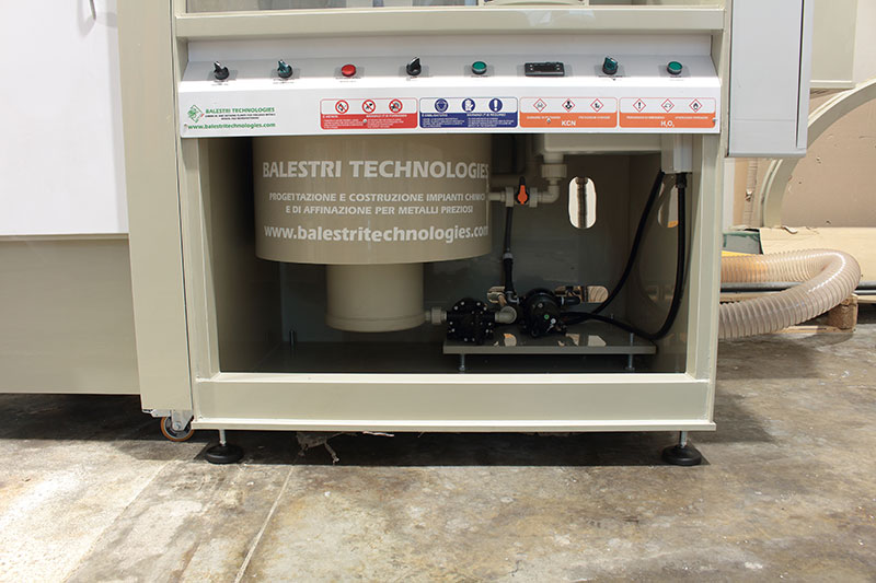 L’impianto è inoltre dotato di vasca di stoccaggio e filtrazione dei liquidi esausti per il successivo recupero dei metalli preziosi presenti in soluzione.