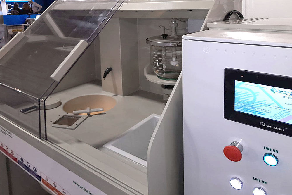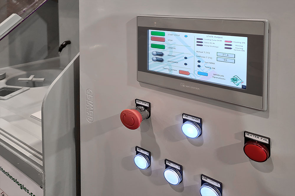 La nuova versione della macchina è integrata di un PLC e display touch screen per l’impostazione dei parametri di lavoro.